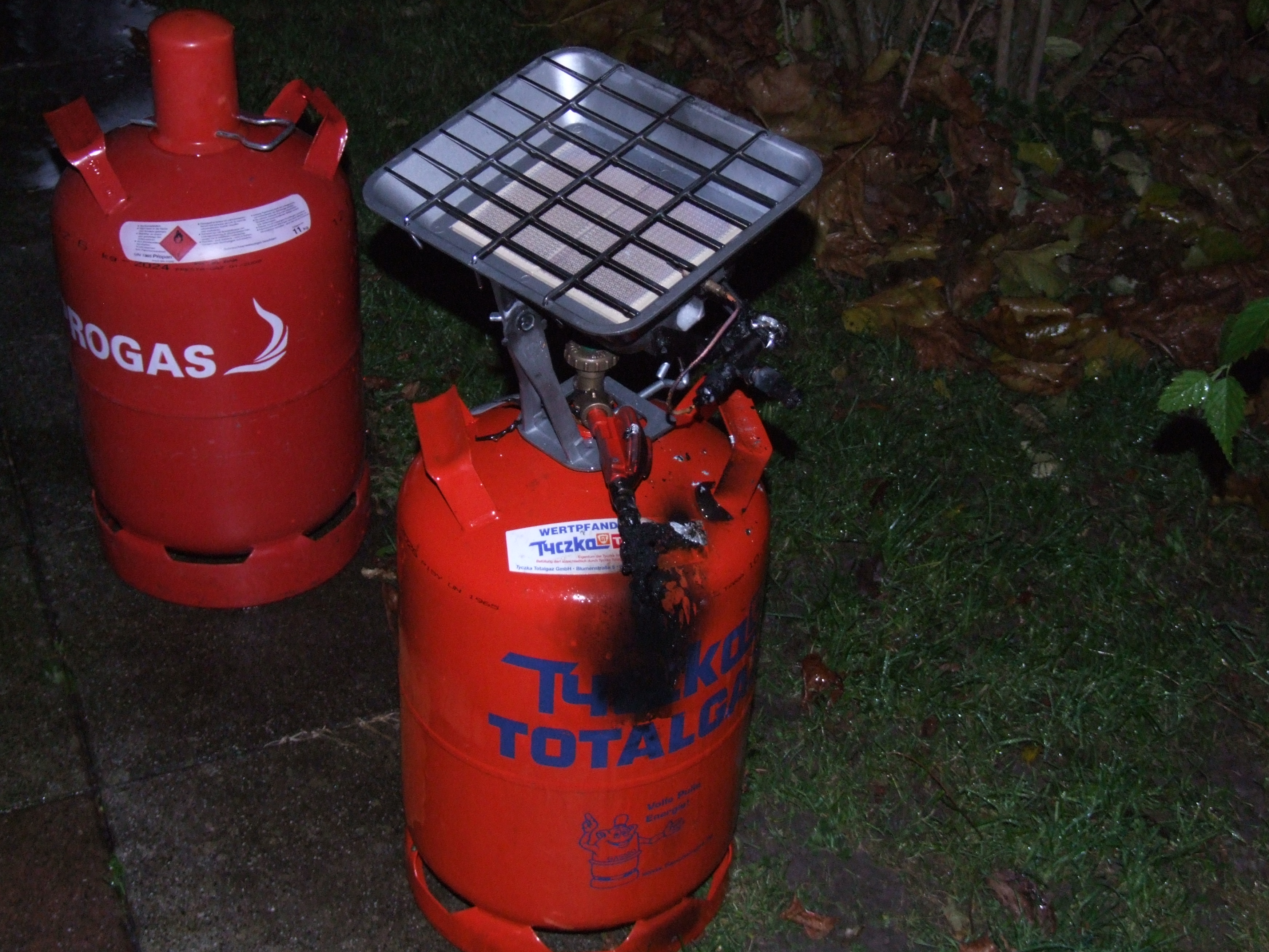 | 30.11.2014 | Brennt Gasflasche mit Heizer an Gartenhütte | |