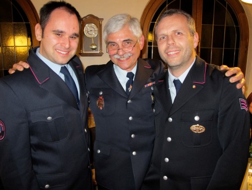 Der stellvertretende Abteilungskommandant Harald Stötzle übernahm die Dankesworte an verdiente Abteilungsmitglieder. Er übergab einen Geschenkkorb an Abteilungskommandant Arthur Schiele für 21 Jahre als Abteilungskommandant und zuvor 5 Jahre Stellvertreter sowie für 20 Jahre als stellvertretender Gesamtkommandant, für seine Ausbildertätigkeit, seinen Einsatz als Schiedsrichter und viele Aufgaben mehr, die Arthur Schiele in seinen nunmehr über 41 Jahren Feuerwehrdienst geleistet hat. Ehrenkommandant Walter Dammann betreut seit 33 Jahren den abteilungseigenen WC-Wagen und erhielt hierfür ebenfalls ein Geschenk. Als Ansporn auf der Ziellinie der Festvorbereitungen erhielten die Abteilungs-Mitglieder des Organisationsteams des Kreisfeuerwehrtags (Bärbel Blumenstein, Klaus Dammann und Jochen Fuchs) ein Vesperbrettle zur Stärkung.