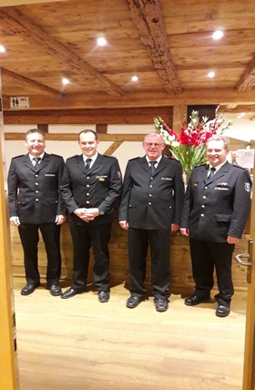 Von links Wilfried Groß, Markus Walz Artur Keller, 1.Stv. Kommandant Jürgen Nell.