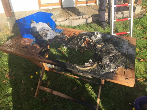 Der Brandherd befand sich auf einem Balkon und nachdem die Bewohner nicht anzutreffen waren, unternahmen Nachbarn einen erfolgreichen Selbstlöschversuch. Die Feuerwehr Salem rückte mit einem Löschzug der Schloßseeallee sowie den Abteilungen Beuren und Weildorf aus. Beuren und Weildorf kontrollierten die Brandreste auf Temperatur und übergaben anschließend die Einsatzstelle an die Polizei. Ebenfalls an der Einsatzstelle: RTW Regelrettungsdienst | ||