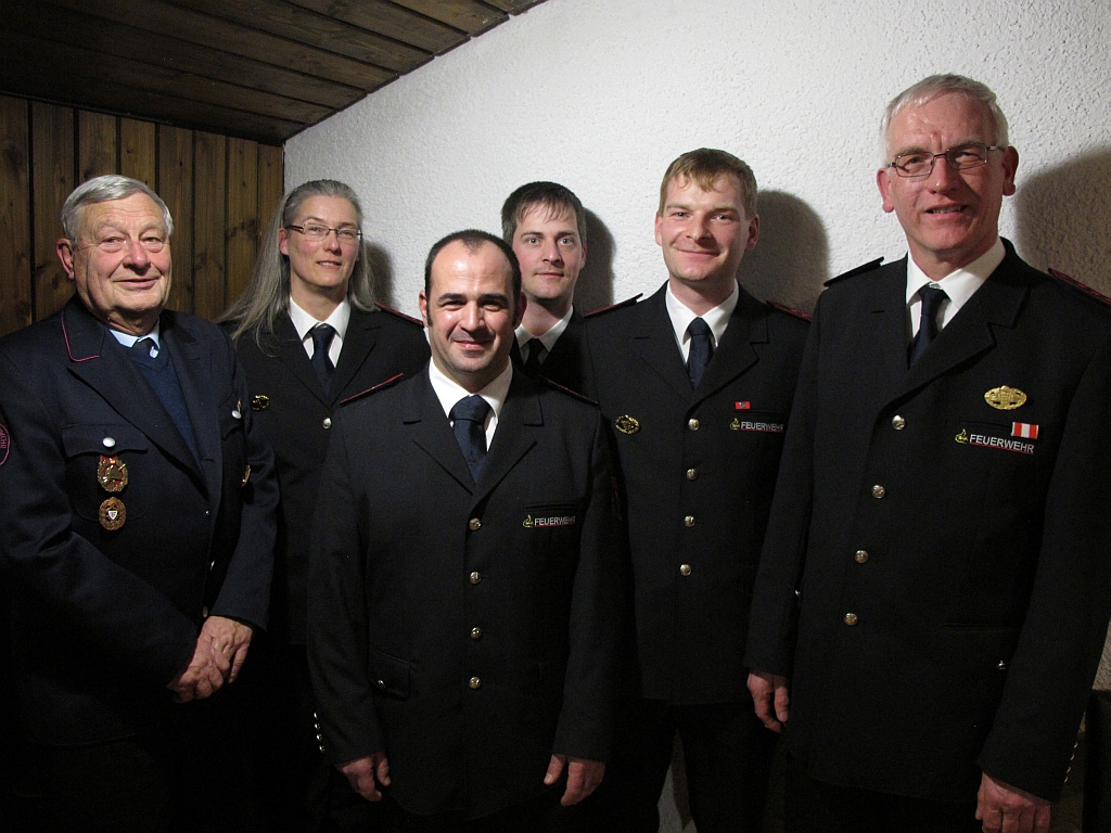 von links: Wolfgang Bauer (Alterkameradensprecher), Bärbel Blumenstein (Schriftführerin), Harald Stötzle (stellvertretender Abteilungskommandant) Stefan Karrer (Beisitzer Aktive), Thomas Karrer (neu gewählter Abteilungskommandant), Klaus Dammann (Kassenwart)