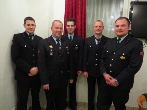 Bild 3: Lückenloser Probenbesuch (v.links): Daniel Stocker, Jürgen Nell, Sascha Herter, Holger Bauer, Abtlg.-Kdt. Tobias Bregenzer