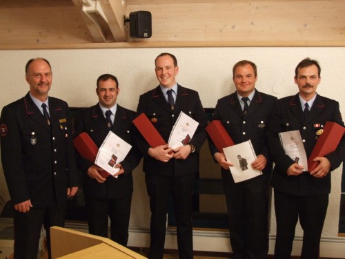 Zur Oberfeuerwehrfrau bzw. zum Oberfeuerwehrmann wurden befördert Jenny Löhle, Andreas Junietz, Tobias Maiwald, Matthias Nardo und Stefan Amann.