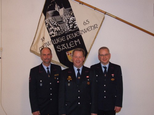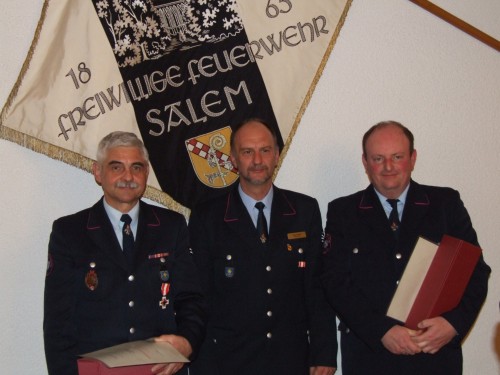 Eine nicht ganz alltägliche Ehrung wurde dem langjährigen stellvertretenden Gesamtkommandanten Arthur Schiele zu Teil. Er wurde mit dem Ehrenkreuz in Gold des deutschen Feuerwehrverbandes für 40 Jahre aktiven Feuerwehrdienst ausgezeichnet. In einer kleinen Laudatio zeigte Kommandant Timo Keirath die wichtigsten Stationen in Arthurs Feuerwehrlaufbahn auf. So war er über 20 Jahre hinweg stellvertretender Gesamtkommandant der Feuerwehr Salem und trat jüngst an diesem Abend nicht mehr zur Wiederwahl an. Des Weiteren ist er seit über 2 Jahrzehnten Abteilungskommandant der Abteilung Salem und wurde dort erst in diesem Jahr wieder im Amt bestätigt.